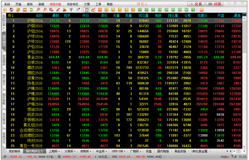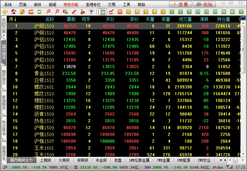 2、“邦内期货主力”和“夜盘”板块中的合约按上期所、大商所、郑商所和中金所的序次显示。
