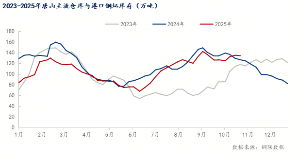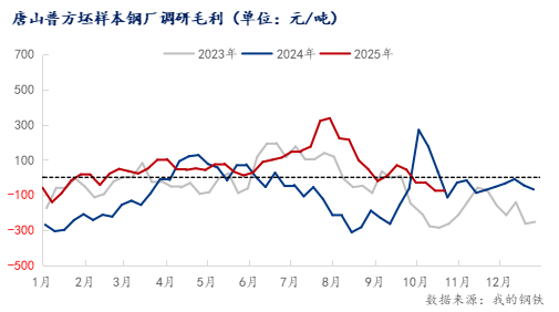 钢坯赢余环境:本周唐山主流样本钢厂均匀铁水不含税本钱为2245元/吨,均匀钢坯含税本钱3003元/吨,周环比下调3元/吨,与10月25日现时普方坯出厂价值2940元/吨比拟,钢厂均匀损失63元/吨。