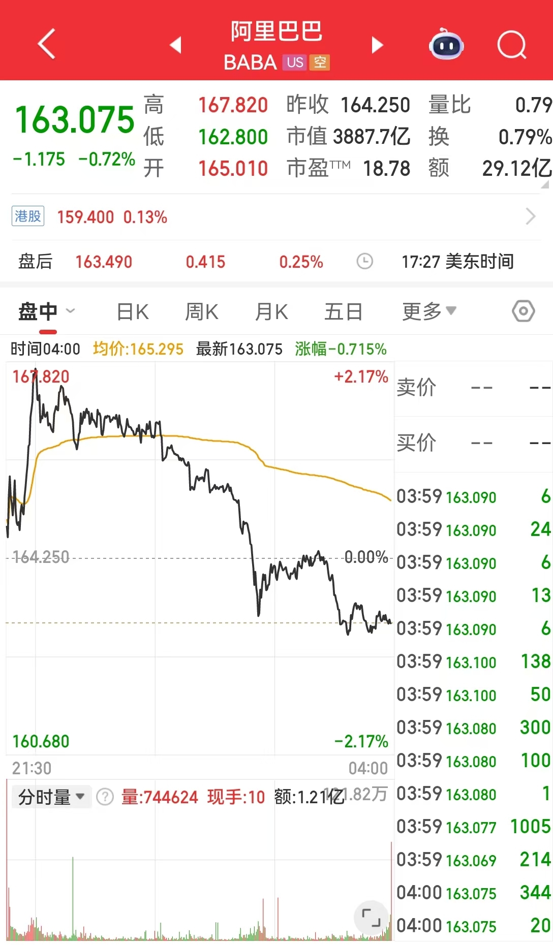 纳斯达克中邦金龙指数收跌2.22%,热门中概股普跌,百度跌超8%,知乎跌超5%,哔哩哔哩跌超4%,好异日、新东方跌超3%,京东跌近3%。
