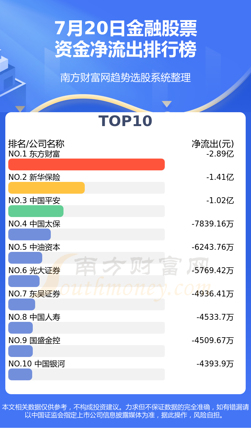 金融股票7月20日资金净流出境况来看,东方资产位列第一位,主力净流出到达-2.89亿元;新华保障排名第二,主力净流出为-1.41亿元;中邦安好排名第三,主力净流出-1.02亿元。主力净流出排名前10的再有:中邦太保、中油血本、光大证券、东吴证券、中邦人寿、邦盛金控、中邦银河。