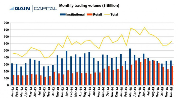 环比上下跌2.6%_口袋贵金属官网嘉盛集团(Gain Capital)最新公然2015年12月的贸易数据,这个月的事迹相当强劲。因为12月份枢纽钱币对即商品墟市的颠簸增大,其零售外汇贸易量环比和同比都浮现较大涨幅,总贸易量抵达2769亿美元。其机构贸易量跟零售营业比拟则略失色,只是GTX贸易量环比也有所上涨。