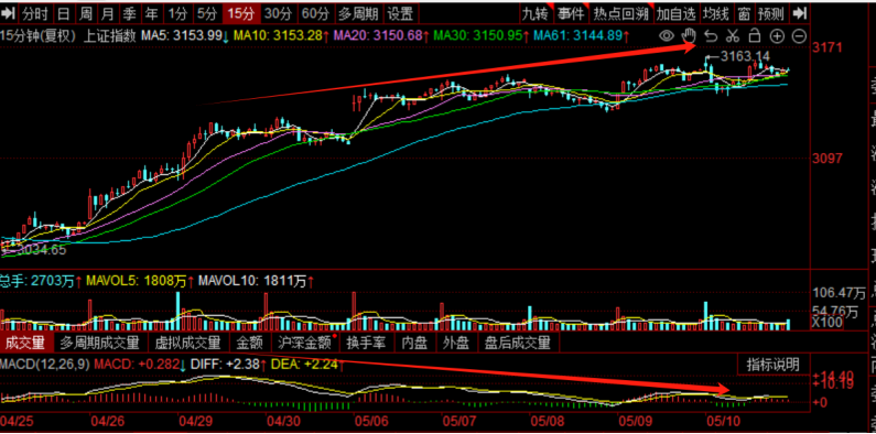 金融数据不足预期,短期对A股变成磨练。上证指数的双重顶背离将进一步获得确认。倘使双重背离后的走势,只是盘整走势的话,那证据墟市仍是对比强的,盘整完毕的行情依旧值得等待。这有点似乎于3月19日高点之后的4月份盘整走势。倘使双重顶背离后是下跌趋向的话,那么压力则会大少少。