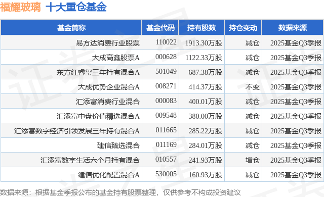 凭据2025基金Q3季报公募基金重仓股数据,重仓该股的公募基金共185家,个中持少有量最众的公募基金为易方达基金的易方达消费行业股票。易方达消费行业股票目前界限为169.49亿元,最新净值3.513(12月10日),较上一营业日上涨0.8%,近一年下跌3.33%。该公募基金现任基金司理为萧楠。萧楠正在任的基金产物蕴涵:易方达瑞恒灵敏摆设羼杂,料理时刻为2018年1月10日至今,岁月收益率为178.32%;易方达消费精选股票,料理时刻为2020年4月13日至今,岁月收益率为-5.96%;易方达高质地苛选三年持有,料理时刻为2020年11月12日至今,岁月收益率为-5.28%。