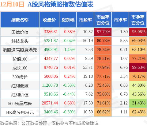 注:各分类指数市盈率、市净率估值百分位按绿-黄-血色阶默示,绿色区间默示所处估值百分位较低即存正在低估恐怕,血色区间默示所处估值百分位较高即存正在高估恐怕,黄色区间默示此刻估值适中。