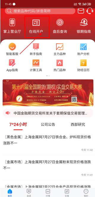1、掀开软件并点击首页上方的“正在线、进入登录界面,输入手机号、登录暗码即可进入开户流程;
