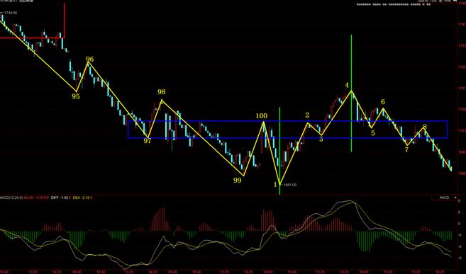 其次便是创业板指,眼前也是缠绕5分钟中枢97-100中枢屡屡波动,无法酿成5分钟三买,而且30分钟一个新的下跌中枢也修筑完毕。创业板指因为之前日线是大的中枢波动,目前正在日线分钟中枢,要抗御中枢向下打破检验前期1571点低点。假使真得是云云的走势,那么以创业板为代外的小票危害就较量大了。