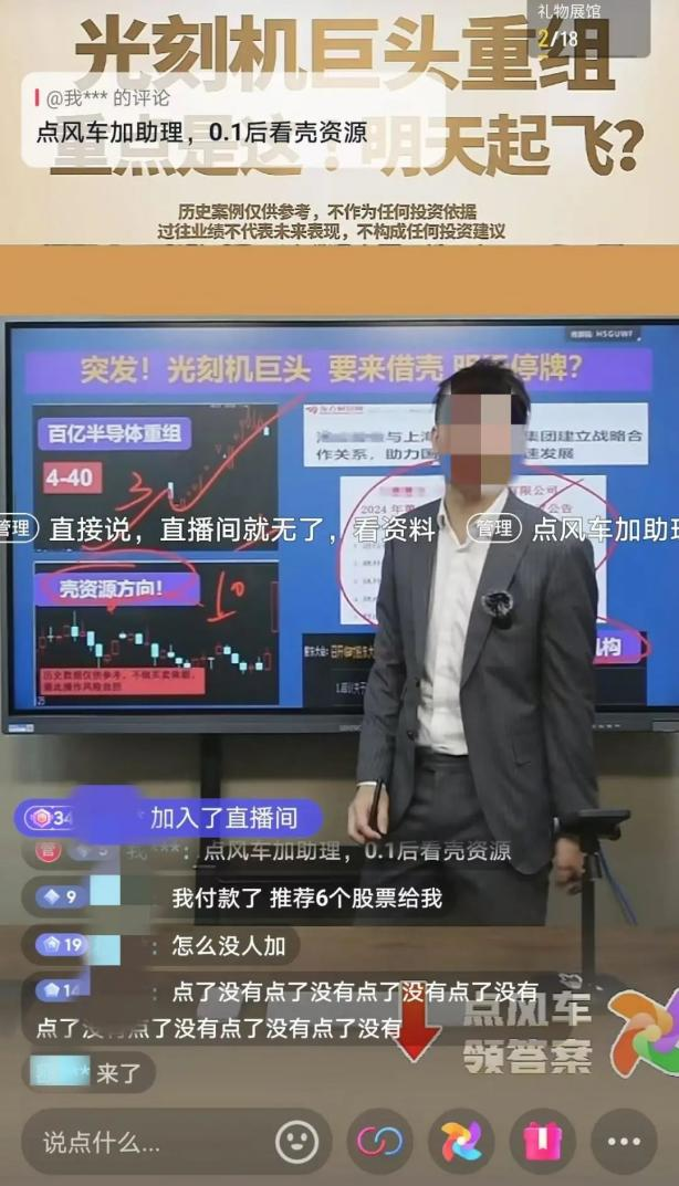 记者合怀到,近期很众高标股背后有直播间主播的助推迹象,一般投资者可以高位接盘。比如,近期“6000亿科技巨头借壳”成为直播间荐股的热门话题,部门主播正在直播时示意“壳资源”公司消息,并向粉丝保举海立股份等股票。该股票指日贯串产生大涨。