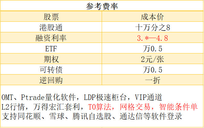 上市券商,佣金本钱价,专项两融利率4.0,免费供给量化软件qmt和ptrade,加司理闭系格式商量