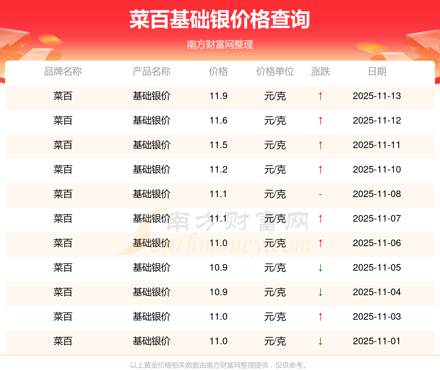 即日是2025年11月13日,重庆江北周大福、周大福、周大福、周大福、周大福、周大福、周大福、老凤祥、老凤祥、老凤祥、周六福等各大金店品牌铂金价值最新价值如下:周大福1333.0元/克、周大福656.0元/克、周大福1333.0元/克、周大福46420.0、周大福18680.0、