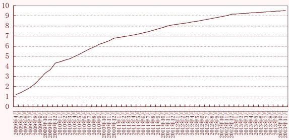 上图为徐教练2009年4月-2013年11月净值图(该资金弧线图由奇获投资供应)