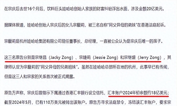 对公外汇存款要求这些企业承接了集团大量代工业务比来娃哈哈家族争产案闹得沸沸扬扬,儿女们为了21亿信赖基金正在境外打讼事。