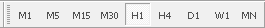 个中M1默示1分钟图;M5默示5分钟图;M15为15分钟图;M30为30分钟图;H1为小时图;H4为4小时图;D1默示日线默示周图;MN是月图。