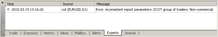 倘使发作过错,过错将正在 Toolbox(器材箱)窗口的 Experts(EA 交往次序)选项卡中列出。