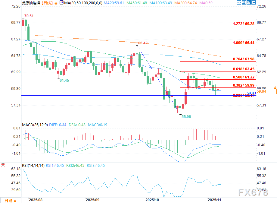 从手艺面来看,原油陷入动摇僵局。61.48美元邻近的50日均线组成强阻力,众头需断然打破该价位才调掀开上行空间。反之,若跌破58.47美元的斐波那契支柱位,也许激发新一轮掷售。正在上述枢纽价位展示显着打破前,估计墟市将延续动摇摒挡、目标不明的走势。