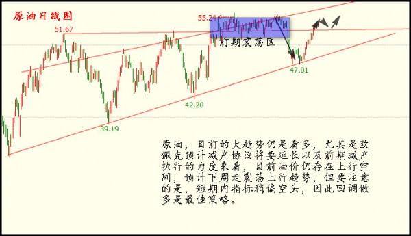 原油本周全部是一个先涨后跌的走势,原油的涨跌跟原油的库存量息息干系,而近期即使美邦原油库存亲切汗青高位,然而其他邦度的库存正正在大幅节减,这正在少许方面给原油供应了维持,然而周五宣布的钻井数据显示,截至4月13日当周,美邦活动石油钻井数减少11座,总量达683座,升至两年来最高秤谌,这无疑给原油再给原油增添了压力。原油本周三最高达到53.8左近,随后行情大幅回落,最低回落到52.7左近,然而永远没有下破维持。