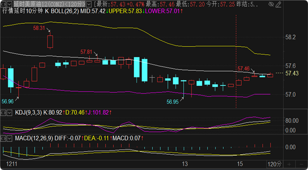 原油政策:及时现报价57.7一线、反弹58.8做空,止损59.4,目的58-57.3;