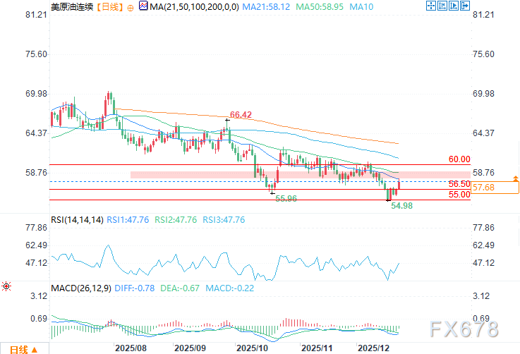 下行方面,初阶支柱位正在56.50美元相近,进一步支柱位为55.00美元整数闭口。若跌破55.00美元,正在具体熊市体例下,油价或将从新面对下探众年低点的危急。